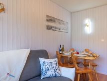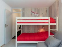 "Les Lauzes D25", 2 -sobni apartman 34 m2 na 2 etaže na 3. katu. Lijepo i moderno uređen: dnevni boravak/blagovaona s 1 kaučem za 2 osobe (1 x 140 cm, dužina 190 cm), plosnatim TV ekranom. Izlaz na balkon, prema zapadu. Kuhinjska niša (pećnica, perilica za suđe, 2 staklokeramičke ploče za kuhanje, mikrovalna pećnica, el. aparat za kavu). Tuš, odv. WC. Donji kat: 1 soba s 1 x 2 kreveta na kat (80 cm, dužina 190 cm). Grijanje. Lijep pogled na planine. Na raspolaganju: Internet (wireless LAN [WLAN], uz doplatu). Ponuda od strane fizičke osobe u skladu s člankom 155, IV, CGI.- Značajke smještaja