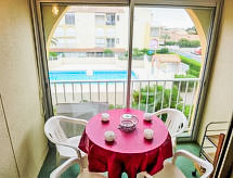 Residence "Les Maisons de la Plage", na 3 kata. 1 km od centra mjesta Narbonne-Plage, sunčano mjesto, 350 m od mora, prijeći cestu. Za zajedničko korištenje: bazen (12 x 6 m, 140- 180 cm dubok, sezonska dostupnost: 30.May. - 30.Sep.). Parking. Trgovina, trgovina živežnim namirnicama, restoran, bar 200 m, ronilački centar 2 km. Sportska lučica 2 km, škola jedrenja 2 km, jahanje konja 5 km. U blizini: Réserve Africaine de Sigean 33 km, Cité de Carcassonne 73 km, Espace balnéoludique de Gruissan 6 km.Interior