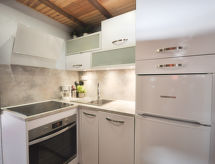 2 -sobni apartman 35 m2 na 2 etaže na 1. katu, prema jugu. Lijepo uređen: dnevni boravak/blagovaona s 1 kaučem za 2 osobe (140 cm, dužina 190 cm), TV-om. Izlaz na terasu. Kuhinjska niša (mini pećnica, perilica za suđe, 3 Indukcione ploče, toster, kuhalo za vodu, mikrovalna pećnica, el. aparat za kavu). Tuš, odv. WC. Gornji kat: (kružne stepenice) 1 soba s kosim stropom, visina stropa 215 - 175 cm s 1 franc. krevetom (160 cm, dužina 200 cm), el. grijanjem. Terasa 8 m2. Garnitura za sjedenje. Pogled na more. Na raspolaganju: perilica za rublje, sušilo za kosu. Internet (wireless LAN [WLAN], besplatan). Parking br. 8. Dodatna informacija: najviše 1 kućni ljubimac / pas dozvoljen. Protupožarni alarm.- Značajke smještaja