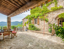 4 -sobna kuća 90 m2. Komforno i lijepo uređena: dnevni boravak/blagovaona s otvorenim kaminom i TV-om. 1 soba s 1 bračnim krevetom (140 cm, dužina 190 cm), kadom/WC-om. 1 soba s 1 bračnim krevetom (160 cm, dužina 190 cm), tušem/WC-om. Izlaz na terasu. Kuhinja (pećnica, perilica za suđe, 3 Indukcione ploče, toster, kuhalo za vodu, mikrovalna pećnica, zamrzivač, el. aparat za kavu). Gornji kat: 25 m2, Studio, prozor prema dvorištu s 1 kaučem za 2 osobe (140 cm, dužina 190 cm), kuhinjskim blokom i tušem/WC-om. Terasa 30 m2 (natkrita) terasa 30 m2, prema jugu i prema zapadu. Garnitura za sjedenje, vrtni roštilj, ležaljke. Vrlo lijep panoramski pogled na planine, dolinu i krajolik. Na raspolaganju: perilica za rublje, visoka dječja stolica, dječji krevetić. Internet (wireless LAN [WLAN], besplatan). Parking (4 automobila). Dodatna informacija: protupožarni alarm.- Aktivnosti u blizini