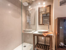 2 -sobni apartman na 2 nivoa 35 m2 na 2. katu. Komforno uređen: dnevni boravak/blagovaona s 1 kaučem za 2 osobe (1 x 140 cm, dužina 190 cm), TV-om (plosnatim TV ekranom). Kuhinjska niša (perilica za suđe, 2 staklokeramičke ploče za kuhanje, el. aparat za kavu, kombinirana mikrovalna pećnica). Izlaz na balkon. Tuš/WC. Gornji kat: 1 soba s 2 kreveta (80 cm, dužina 200 cm). El. grijanje. Balkon 6 m2. Balkonski namještaj, ležaljke (2). Pogled na vrt. Na raspolaganju: perilica za rublje, glačalo, dječji krevetić do 2 godine, sušilo za kosu. Internet (wireless LAN [WLAN], besplatan). Parking br. 34. Dodatna informacija: apartman za nepušače.- postrojenja