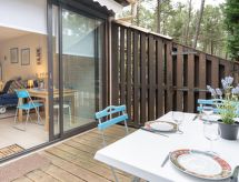 Residence "Les Pins". U četvrti Domaine de l'Aubarède, na rubu mjesta, 1.7 km od centra mjesta, 2 km od mora, 6 km od jezera, u šumi. Za zajedničko korištenje: dječje igralište. Parking. Trgovina 1.7 km, restoran 1.7 km, pješice 12 minuta do centra, pješčana plaža 1.7 km. Golf teren 2 km, tenis 1.5 km, jahanje konja 3 km, biciklistička staza 100 m, dječje igralište 20 m. U blizini: Bordeaux 60 km, Dune du Pyla 70 km, Saint Emilion 70 km.Interior