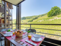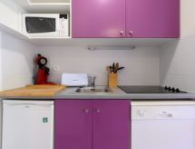 "Bâtiment A", 2 -sobni apartman 32 m2 na 3. katu, prema jugu. Jednostavno i svrsishodno uređen: dnevni boravak/blagovaona s 1 kaučem za 2 osobe (140 cm, dužina 200 cm), TV-om i plosnatim TV ekranom. Izlaz na balkon, prema jugu. 1 soba s 1 franc. krevetom (140 cm, dužina 190 cm), plosnatim TV ekranom. Kuhinjska niša (perilica za suđe, 4 staklokeramičke ploče za kuhanje, el. aparat za kavu, Doze za mašinu za kavu (SENSEO) uz doplatu, raclette roštilj, kombinirana mikrovalna pećnica, set za fondue (sir)). Kada, odv. WC. El. grijanje. Parketni pod. Balkon 6 m2, prema jugu. Balkonski namještaj, ležaljke. Djelomičan pogled na skijašku stazu. Na raspolaganju: sušilo za kosu. Dodatna informacija: apartman za nepušače. Protupožarni alarm.- Značajke smještaja