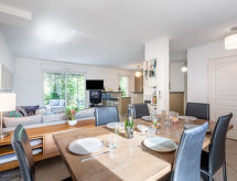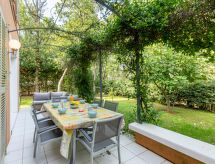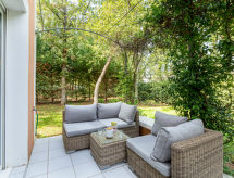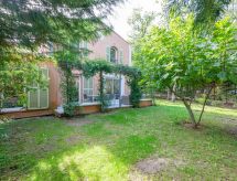 4 -sobna kuća u nizu 100 m2 na 2 etaže. Komforno i lijepo uređena: dnevni boravak/blagovaona s panoramskim prozorom s TV-om (plosnatim TV ekranom), DVD-om. Izlaz u vrt, na terasu. 1 soba s 1 franc. krevetom (1 x 160 cm, dužina 200 cm), klima uređajem. Izlaz u vrt. Otvorena kuhinja (pećnica, perilica za suđe, 4 staklokeramičke ploče za kuhanje, toster, kuhalo za vodu, mikrovalna pećnica, zamrzivač, el. aparat za kavu). Izlaz u vrt, na terasu. Tuš, odv. WC. Gornji kat: 1 soba s 1 franc. krevetom (1 x 140 cm, dužina 190 cm), umivaonikom i tušem. 1 soba s 2 kreveta (80 cm, dužina 190 cm). Kada, odv. WC, duplim umivaonikom. El. grijanje. Terasa 15 m2, vrt 300 m2. Garnitura za sjedenje. Na raspolaganju: perilica za rublje, glačalo, sušilo za kosu. Internet (wireless LAN [WLAN], besplatan). Parking (1 automobil). Dodatna informacija: kuća za nepušače. Protupožarni alarm. 83107000363HQ- Značajke smještaja