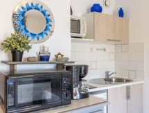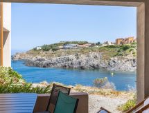 Residence "Les Roches Bleues". Na rubu mjesta, 1.5 km od centra mjesta Collioure, 200 m od mora, 200 m od plaže. Trgovina 1 km, supermarket 400 m, restoran 500 m, željeznička postaja "Collioure" 2.5 km, šljunčana plaža "Plage de l'Oli" 200 m, ronilački centar 3 km. Sportska lučica 1 km, golf teren (27 rupa) 25 km, škola jedrenja 2.2 km. U blizini: Château Royal de Collioure 2 km, Port Vendres 1 km, Banyuls sur Mer 8 km. Dodatna informacija: nema dizala.Interior