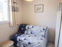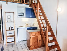 Residence "Les Roches Bleues". Na rubu mjesta, 1.5 km od centra mjesta Collioure, 200 m od mora, 200 m od plaže. Trgovina 1 km, supermarket 400 m, restoran 500 m, željeznička postaja "Collioure" 2.5 km, šljunčana plaža "Plage de l'Oli" 200 m, ronilački centar 3 km. Sportska lučica 1 km, golf teren (27 rupa) 25 km, škola jedrenja 2.2 km. U blizini: Château Royal de Collioure 2 km, Port Vendres 1 km, Banyuls sur Mer 8 km. Dodatna informacija: nema dizala.Interior