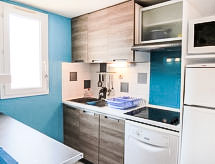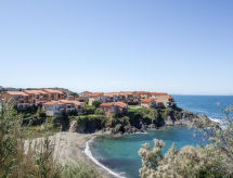 Residence "Les Roches Bleues". Na rubu mjesta, 1.5 km od centra mjesta Collioure, 200 m od mora, 200 m od plaže. Trgovina 1 km, supermarket 400 m, restoran 500 m, željeznička postaja "Collioure" 2.5 km, šljunčana plaža "Plage de l'Oli" 200 m, ronilački centar 3 km. Sportska lučica 1 km, golf teren (27 rupa) 25 km, škola jedrenja 2.2 km. U blizini: Château Royal de Collioure 2 km, Port Vendres 1 km, Banyuls sur Mer 8 km. Dodatna informacija: nema dizala.Interior