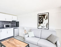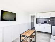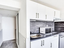 Mali residence "Les Sables d'Aiguebelle", na 2 kata. U četvrti d'Aiguebelle, izvan mjesta, 5 km od centra mjesta Lavandou, sunčano mjesto, 10 m od mora, direktan pristup na plažu. Za zajedničko korištenje: vanjski tuš. (8 stepenica). Javni parking 150 m. Supermarket 6 km, restoran, bar, cafe 250 m, autobusna postaja "Aiguebelle" 500 m, pješčana plaža "Aiguebelle" 10 m. Sportska lučica 4 km, golf teren (18 rupa) 20 km, tenis 5 km, minigolf 5 km. Dodatna informacija: nema dizala. Ključeve ćete preuzeti u turističkoj agenciji Interhome u mjestu Le Lavandou.Interior
