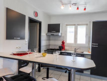3 -sobna polovica dvojne kuće 88 m2. Svrsishodno i lijepo uređena: dnevni boravak/blagovaona s 1 kaučem za 1 osobu (120 cm, dužina 190 cm), TV-om sa sat. prijemnikom (plosnatim TV ekranom), peći za grijanje i el. grijanjem. Izlaz na terasu. 1 soba s 1 franc. krevetom (1 x 140 cm, dužina 190 cm). 1 soba s 1 franc. krevetom (1 x 140 cm, dužina 190 cm). Otvorena kuhinja (1 ploča za kuhanje, perilica za suđe, 3 plamena za kuhanje, toster, kuhalo za vodu, mikrovalna pećnica, el. aparat za kavu, Doze za mašinu za kavu (Senseo) uz doplatu). Kada/WC, odv. WC. Drveni pod. Garnitura za sjedenje, vrtni roštilj. Na raspolaganju: perilica za rublje. Internet (wireless LAN [WLAN], besplatan). Dodatna informacija: 1 kućni ljubimac / pas dozvoljen. Protupožarni alarm.- postrojenja