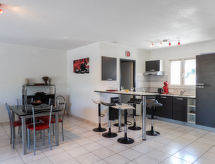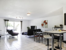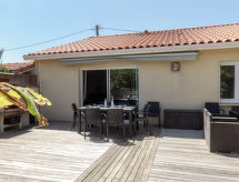 Mimizan Plage: Kuća u nizu "Les sables", godina izgradnje 2005. U samom mjestu 500 m od centra mjesta Mimizan Plage, 200 m od mora, 8 km od jezera, 200 m od plaže. Za samostalno korištenje: terasa (100 m2), vrtna garnitura za sjedenje, roštilj. Parking. Trgovina, trgovina živežnim namirnicama 700 m, trgovački centar 6 km, restoran 100 m, pekara 150 m, pješačka zona 500 m, pješčana plaža 200 m, jezero za kupanje "Aureilhan" 9 km. Golf teren (9 rupa) 10 km, škola jedrenja na dasci, biciklistička staza 150 m. U blizini: Skate parc 2 km, Disc golf 2 km, Eco musée Marquèze 45 m, Arcachon 70 m, Biscarrosse 35 m.Interior