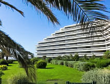 Canet Plage: Residence "Les Terrasses du Levant", na 7 kata. U četvrti Canet Sud, 50 m od mora, 50 m od plaže. U kompleksu: dizalo. Trgovina 200 m, trgovački centar 8 km, restoran, cafe 200 m, željeznička postaja "Perpignan" 12 km, pješčana plaža 50 m, park "Aqualand St Cyprien" 12 km, ronilački centar 18 km, vanjski bazen 3 km, natkriveni bazen 3 km, jezero Etang de Canet 1 km. Sportska lučica 5 km, golf teren (18 rupa) 8 km, tenis 3 km, minigolf 1 km. U blizini: Perpignan 12 km, Collioure 25 km, Banyuls 37 km, Espagne 35 km, Andorre 180 km, Barcelone 200 km. Poznata jezera u blizini: Lac de Villeneuve de la Raho 19 km, Lac de St Jean Pla de Corts 39 km, Gorges de Gouleyrous 42 km. Pješačke staze: Abbaye de St Martin du Canigou 70 km, Pic du Canigou 77 km, Lac des Bouillouses 105 km. Dodatna informacija: U istoj kući iznajmljuju se dodatni apartmani.Interior