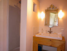 5 -sobna kuća 180 m2 na 2 etaže. Objekt pogodan za 6 + 3 djece. Djelomično renovirana, rustikalno uređena: dnevni boravak s otvorenim kaminom i TV-om (plosnatim TV ekranom). Kuhinja (4 ploče za kuhanje, pećnica, perilica za suđe, el. aparat za kavu) s stolom za blagovanje. Gornji kat: 1 dječja soba s 2 kreveta (90 cm, dužina 190 cm). 1 soba s 1 bračnim krevetom (160 cm, dužina 200 cm), tušem/WC-om. (vanjske stepenice) 1 velika soba s 1 krevetom (90 cm, dužina 190 cm), 1 bračnim krevetom (160 cm, dužina 200 cm), tušem/WC-om. (vanjske stepenice) 1 velika soba s 1 franc. krevetom (160 cm, dužina 200 cm), tušem/WC-om. Terasa 20 m2. Garnitura za sjedenje, vrtni roštilj, ležaljke (4). Na raspolaganju: perilica za rublje, sušilica. Internet (wireless LAN [WLAN], besplatan). Dodatna informacija: 2 kućna ljubimca / psa dozvoljena. Protupožarni alarm.- postrojenja
