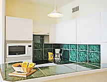 1 -sobni studio 35 m2 na 2. katu. Svijetlo, svrsishodno i lijepo uređen: dnevno-spavaća soba s 1 kaučem za 2 osobe (1 x 140 cm, dužina 190 cm), TV-om (plosnatim TV ekranom). Izlaz na balkon. Kuhinjska niša (pećnica, 4 staklokeramičke ploče za kuhanje, mikrovalna pećnica). Tuš/WC. Balkon 6 m2. Balkonski namještaj. Vrlo lijep pogled na more i krajolik. Na raspolaganju: perilica za rublje, glačalo, sušilo za kosu. Internet (wireless LAN [WLAN], besplatan). Dodatna informacija: apartman za nepušače. Protupožarni alarm.- Značajke smještaja