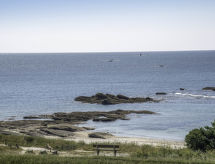 Quiberon: Mali residence "Les Trois Iles", na 2 kata. U samom mjestu 2 km od centra mjesta Quiberon, mirno mjesto, 20 m od mora, 30 m od plaže. Parking. Trgovina 1.5 km, trgovina živežnim namirnicama 2 km, supermarket 2.4 km, restoran 2 km, željeznička postaja "Quiberon" 2.5 km, trajekt "Port Maria" 2.5 km, pješčana plaža "Plage du Conguel" 600 m, termalno kupalište "Thalassothérapie de Quiberon" 200 m. Marina 3 km, golf teren (3 rupa) 500 m, škola jedrenja 3 km. U blizini: Presqu'ile de Quiberon et côte sauvage 3 km, Gare maritime les iles Houat, Hoedic. 3 km, Les alignements de Carnac 26 km, Auray et le port de St Goustan 33 km, Vannes 48 km, Lorient 63 km.Interior
