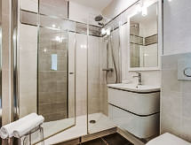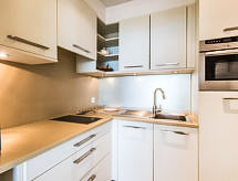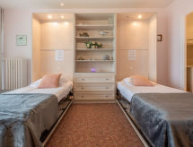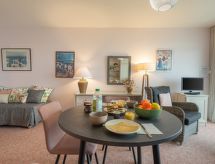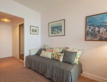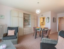 Quiberon: Mali residence "Les Trois Iles", na 2 kata. U samom mjestu 2 km od centra mjesta Quiberon, mirno mjesto, 20 m od mora, 30 m od plaže. Parking. Trgovina 1.5 km, trgovina živežnim namirnicama 2 km, supermarket 2.4 km, restoran 2 km, željeznička postaja "Quiberon" 2.5 km, trajekt "Port Maria" 2.5 km, pješčana plaža "Plage du Conguel" 600 m, termalno kupalište "Thalassothérapie de Quiberon" 200 m. Marina 3 km, golf teren (3 rupa) 500 m, škola jedrenja 3 km. U blizini: Presqu'ile de Quiberon et côte sauvage 3 km, Gare maritime les iles Houat, Hoedic. 3 km, Les alignements de Carnac 26 km, Auray et le port de St Goustan 33 km, Vannes 48 km, Lorient 63 km.Interior