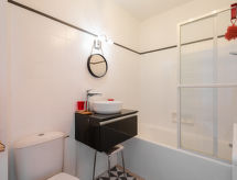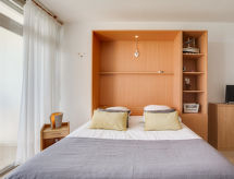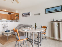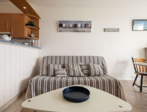 Quiberon: Mali residence "Les Trois Iles", na 2 kata. U samom mjestu 2 km od centra mjesta Quiberon, mirno mjesto, 20 m od mora, 30 m od plaže. Parking. Trgovina 1.5 km, trgovina živežnim namirnicama 2 km, supermarket 2.4 km, restoran 2 km, željeznička postaja "Quiberon" 2.5 km, trajekt "Port Maria" 2.5 km, pješčana plaža "Plage du Conguel" 600 m, termalno kupalište "Thalassothérapie de Quiberon" 200 m. Marina 3 km, golf teren (3 rupa) 500 m, škola jedrenja 3 km. U blizini: Presqu'ile de Quiberon et côte sauvage 3 km, Gare maritime les iles Houat, Hoedic. 3 km, Les alignements de Carnac 26 km, Auray et le port de St Goustan 33 km, Vannes 48 km, Lorient 63 km.Interior