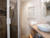 1 -sobni apartman 26 m2 na 1. katu. Objekt pogodan za 2 odraslih + 2 djece. Potpuno renoviran godine 2017, komforno i ukusno uređen: dnevni boravak/blagovaona s 1 kaučem za 2 osobe (140 cm, dužina 190 cm), 1 krevetom na izvlačenje (2 osobe 2 x 80 cm, dužina 190 cm), TV-om (plosnatim TV ekranom). Izlaz na balkon. Kuhinjska niša (pećnica, perilica za suđe, 3 Indukcione ploče, mikrovalna pećnica, el. aparat za kavu, Doze za mašinu za kavu (Nespresso) uz doplatu). Tuš/WC. Grijanje. Balkon 5 m2, prema jugozapadu. Balkonski namještaj. Vrlo lijep panoramski pogled na planine i skijašku stazu. Na raspolaganju: sušilo za kosu. Internet (wireless LAN [WLAN], besplatan). Dodatna informacija: apartman za nepušače. Protupožarni alarm.- postrojenja
