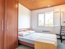 "Les Violettes", 3 -sobna kuća 60 m2, u prizemlju. Vrlo jednostavno uređena: dnevni boravak/blagovaona s 1 kaučem za 2 osobe (1 x 140 cm, dužina 190 cm), TV-om (plosnatim TV ekranom). Izlaz na terasu. 1 soba s 1 franc. krevetom (1 x 140 cm, dužina 190 cm). 1 soba s 2 kreveta (90 cm, dužina 190 cm). Kuhinja (pećnica, perilica za suđe, 4 staklokeramičke ploče za kuhanje, toster, kuhalo za vodu, mikrovalna pećnica, zamrzivač, el. aparat za kavu, Doze za mašinu za kavu (Nespresso)). Tuš, odv. WC. Terasa 10 m2. Garnitura za sjedenje. Na raspolaganju: perilica za rublje, glačalo. Parking (ograđen, 1 automobil). Dodatna informacija: najviše 1 kućni ljubimac / pas dozvoljen. Protupožarni alarm.- postrojenja