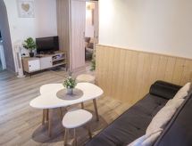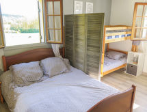 "Les Virades", 4 -sobna kuća u nizu 70 m2 na 2 etaže. Svrsishodno uređena: salon s TV-om (plosnatim TV ekranom). 1 otvorena soba s 1 franc. krevetom (140 cm, dužina 190 cm). Kuhinja (4 ploče za kuhanje, pećnica, perilica za suđe, toster, mikrovalna pećnica, zamrzivač, el. aparat za kavu, Doze za mašinu za kavu (Senséo) uz doplatu) s stolom za blagovanje. Izlaz na terasu. Tuš, odv. WC. Gornji kat: (vanjske stepenice) 1 soba s 1 franc. krevetom (160 cm, dužina 200 cm). Izlaz na balkon. (vanjske stepenice) 1 soba s 1 franc. krevetom (140 cm, dužina 190 cm), tušem/WC-om. El. grijanje. Terasa 15 m2, sjenica. Garnitura za sjedenje, vrtni roštilj (prijenosni), ležaljke (4). Pogled na krajolik. Na raspolaganju: perilica za rublje, glačalo. Dodatna informacija: kuća za nepušače. Najviše 1 mali kućni ljubimac / pas dozvoljen. Protupožarni alarm. Katovi nisu interno povezani.- postrojenja