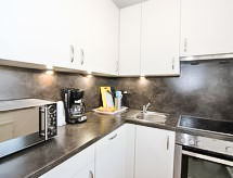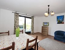 2 -sobni apartman 55 m2, u prizemlju. Renoviran godine 2016, udobno uređen: predsoblje. Veliki dnevni boravak/blagovaona s 1 kaučem za 2 osobe, stolom za blagovanje i kabelskom TV (plosnatim TV ekranom). Izlaz u vrt, na terasu. 1 soba s 1 x 2 kreveta na kat, 1 bračnim krevetom. Izlaz na terasu. Kuhinjska niša (pećnica, perilica za suđe, 4 staklokeramičke ploče za kuhanje, mikrovalna pećnica). Kada/WC. Garnitura za sjedenje. Na raspolaganju: dječji krevetić, sušilo za kosu. Internet (wireless LAN [WLAN], besplatan). Dodatna informacija: apartman za nepušače. Najviše 1 kućni ljubimac / pas dozvoljen.- postrojenja
