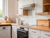 3 -sobni apartman u prizemlju. Komforno i stilski uređen: dnevni boravak s TV-om. 1 bračna soba s 1 bračnim krevetom i tušem. 1 soba s 2 kreveta. Blagovaona. Kuhinja (4 ploče za kuhanje, perilica za suđe, mikrovalna pećnica, zamrzivač). Kada/tuš/WC. Grijanje. Na raspolaganju: perilica za rublje. Internet (wireless LAN [WLAN], besplatan). Parking (1 automobil).- postrojenja