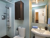 Jardins Sa Boadella, 3 km od mjesta Lloret de Mar: Stambeni objekt "Lloret Garden", na 3 kata, godina izgradnje 2005, okružen drvećem. Sunčano mjesto na padini, 200 m od mora, 200 m od plaže, prijeći cestu. Za zajedničko korištenje: park (ograđen), terasasti vrt travnjak, 2 bazena pravokutni (18 x 6 m, sezonska dostupnost: 01.Jun. - 30.Sep.). Bazen za djecu, vanjski tuš, košarka, dječje igralište (ljuljačka). U kući: dizalo, klimatizacija. Parking br. 17 (natkriti). Trgovina 700 m, trgovina živežnim namirnicama 300 m, restoran 400 m, autobusna postaja 300 m, željeznička postaja "Blanes" 6 km, pješčana plaža, uvala za kupanje 200 m. Golf teren 2 km, tenis 1 km, jahanje konja 2 km. U blizini: Jardin Santa Clothilde 100 m, Water world 3 km, Marineland 8 km. Vlasnik ne prihvaća grupe. Vlasnik ne prihvaća grupe mladih. Susjedstvo izrazito osjetljivo na buku. Očekuje se mir i pristojno ponašanje.Interior