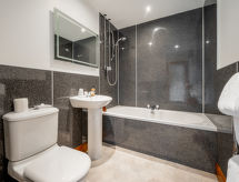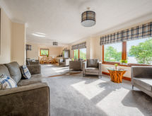 "Loch Ness View", 5 -sobni apartman na gornjem katu. Prostrano i svijetlo, renoviran godine 2022, moderno i ukusno uređen: otvoreni veliki dnevni boravak/blagovaona s TV-om i plosnatim TV ekranom. 3 bračne sobe, svaka soba s 1 bračnim krevetom i tušem/WC-om. 1 bračna soba s 1 bračnim krevetom. Mala, povezna soba s 1 x 2 kreveta na kat. Otvorena kuhinja (4 Indukcione ploče, zamrzivač, kombinirana mikrovalna pećnica) s stolom za blagovanje. Kada/tuš/WC. Grijanje. Djelomičan pogled na jezero. Na raspolaganju: Internet (wireless LAN [WLAN], besplatan). Parking uz kuću. Dodatna informacija: prikladno za obitelji. Kuća za nepušače. 2 kućna ljubimca / psa dozvoljena. TV samo EN. Vlastiti ulaz.- postrojenja