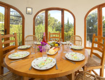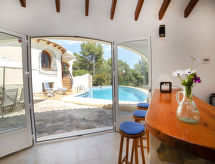 Benissa Costa: Lijepa, ugodna vila "Lolita", na 2 kata. U samom mjestu 10 km od centra mjesta Calpe, na rubu mjesta, 7.5 km od centra mjesta Benissa, mirno, sunčano mjesto u četvrti s vilama, zona s malo prometa, 2 km od mora, 4 km od plaže. Za samostalno korištenje: parcela (ograđena), terasasti vrt, bazen (9 x 5 m, sezonska dostupnost: 01.Jan. - 31.Dec.). Vanjski tuš, terasa, kućica s roštiljem. U kući: perilica za rublje. Parking (natkriti). Supermarket 3 km, restoran 2 km, pješčana plaža "Cala La Fustera" 4 km šljunčana plaža "Cala Baladrar" 2 km. Sportska lučica 4.7 km, golf teren 4.7 km. U blizini: Aqualandia, Mundomar, Terra Mítica, Les Fonts de l'Algar, Castillo de Guadalest, Terra Natura, Benidorm Palace (Benidorm). Vlasnik ne prihvaća grupe mladih.Interior