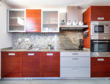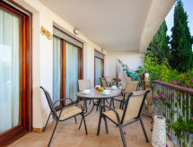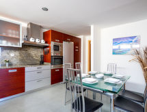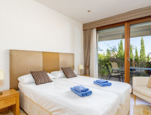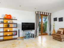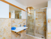4 -sobni apartman 140 m2, u prizemlju. Prostrano i svijetlo, moderno i luksuzno uređen: predsoblje. Veliki dnevni boravak/blagovaona s stolom za blagovanje, digitalnim TV, međunarodnim TV kanalima, CD-om i DVD-om. Izlaz na terasu. 2 sobe, svaka soba s 2 kreveta (90 cm, dužina 200 cm). Izlaz na terasu. 1 soba s Garderoba s 1 franc. krevetom (150 cm, dužina 200 cm), kadom/bidetom/WC-om i duplim umivaonikom. Izlaz na terasu. Kuhinja (pećnica, perilica za suđe, 4 staklokeramičke ploče za kuhanje, toster, kuhalo za vodu, mikrovalna pećnica, zamrzivač, el. aparat za kavu) s stolom za blagovanje. Kada/bidet/WC, odv. WC. Klima uređaj, grijanje toplim zrakom. Terasa 20 m2 (natkrita). Garnitura za sjedenje. Bočni pogled na more i planine. Na raspolaganju: perilica za rublje, glačalo, visoka dječja stolica, dječji krevetić, sušilo za kosu. Internet (wireless LAN [WLAN], besplatan). Parking. VFT/MA/53397- postrojenja