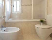 Lorena: Moderna, lijepa, ugodna obiteljska kuća "Lorena". U području Delta del Ebro, mirno mjesto u četvrti s vilama, 350 m od mora, 300 m od plaže. Za samostalno korištenje: lijepi vrt (ograđen) bilje, bazen u obliku bubrega (7 x 3 m, 100- 160 cm dubok, sezonska dostupnost: 01.Mar. - 30.Oct.). Terasa, vrtna garnitura za sjedenje, roštilj. U kući: pristup internetu, wireless LAN [WLAN], solarij, klimatizacija, perilica za rublje. Parking na parceli, javni parking 1 m na ulici. Supermarket, restoran, bar, pekara 800 m, pješčana plaža 300 m. Sportska lučica 2 km, golf teren (18 rupa) 15 km, škola jedrenja 300 m. U blizini: Port Aventura 65 km, Parque natural del Delta.Interior