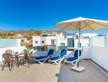 "Los Mangos", 4 -sobna kuća u nizu 97 m2 na 3 etaže. Vrlo komforno uređena: dnevni boravak/blagovaona s digitalnim TV, međunarodnim TV kanalima i klima uređajem. Izlaz u vrt. 1 soba s 2 kreveta (80 cm, dužina 190 cm), klima uređajem. Otvorena kuhinja (pećnica, perilica za suđe, 4 staklokeramičke ploče za kuhanje, toster, kuhalo za vodu, mikrovalna pećnica, zamrzivač, el. aparat za kavu). Odv. WC. Bez grijanja. Gornji kat: 1 soba s 1 franc. krevetom (150 cm, dužina 190 cm), tušem/WC-om i klima uređajem. 1 soba s 2 kreveta (90 cm, dužina 190 cm), klima uređajem. Tuš/WC. Izlaz na terasu. Vrt, travnjak. Garnitura za sjedenje, vrtni roštilj, ležaljke. Vrlo lijep pogled na more, planine i mjesto. Na raspolaganju: perilica za rublje, glačalo, visoka dječja stolica, dječji krevetić, sušilo za kosu. Internet (wireless LAN [WLAN], besplatan). VFT/MA21383- postrojenja