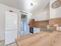 3 -sobna kuća u nizu 62 m2 na 2 etaže. Djelomično renovirana godine 2022, lijepo uređena: veliki dnevni boravak/blagovaona s TV-om (plosnatim TV ekranom). Izlaz na terasu. Otvorena kuhinja (pećnica, perilica za suđe, 3 Indukcione ploče, toster, kuhalo za vodu, mikrovalna pećnica, zamrzivač, el. aparat za kavu, Doze za mašinu za kavu (Nespresso) uz doplatu). Gornji kat: 1 soba s 1 franc. krevetom (160 cm, dužina 200 cm). 1 soba s 2 kreveta (90 cm, dužina 190 cm). Kada, odv. WC. Klima uređaj. Terasa 17 m2 (natkrita), prema sjeverozapadu terasa 17 m2, prema jugoistoku, vrtna terasa 170 m2. Garnitura za sjedenje, električni roštilj, ležaljke (2). Pogled na krajolik. Na raspolaganju: perilica za rublje, glačalo. Internet (wireless LAN [WLAN], besplatan). Parking br. 74. Dodatna informacija: kuća za nepušače. 1 mali kućni ljubimac / pas dozvoljen. Protupožarni alarm.- Značajke smještaja