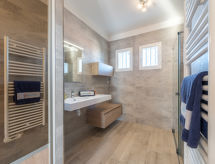 4 -sobni apartman 150 m2 na 1. katu. Prostrano, renoviran godine 2021, udobno uređen: predsoblje s otvorenim kaminom (samo za dekoraciju). Dnevni boravak/blagovaona s TV-om (plosnatim TV ekranom). Izlaz na balkon. 1 soba s 1 franc. krevetom (160 cm, dužina 200 cm), odv. WC-om i tušem. 1 soba s 1 franc. krevetom (160 cm, dužina 200 cm). 1 velika soba s 2 kreveta (90 cm, dužina 190 cm). Kuhinja (pećnica, perilica za suđe, 3 staklokeramičke ploče za kuhanje, toster, kuhalo za vodu, mikrovalna pećnica, zamrzivač, el. aparat za kavu, Doze za mašinu za kavu (Nespresson) uz doplatu). Tuš, odv. WC. Klima uređaj. Balkon 6 m2, vrt 400 m2, prema jugu i prema istoku. Garnitura za sjedenje, električni roštilj, ležaljke (4). Djelomičan pogled na more. Na raspolaganju: perilica za rublje, glačalo, visoka dječja stolica, dječji krevetić do 2 godine, sušilo za kosu. Internet (wireless LAN [WLAN], besplatan). Parking (2 automobila). Dodatna informacija: 1 mali kućni ljubimac / pas dozvoljen. Protupožarni alarm. 83119005284HT- postrojenja