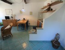 Kuća s 3 apartmana "Luanen". 50 m od centra mjesta Riomaggiore, 14 km od centra mjesta La Spezia, na padini, 400 m od mora. Prilaz autom do 150 m od kuće. 100 m put sa stepenicama do kuće. Javni parking 150 m uz doplatu. Trgovina živežnim namirnicama, restoran, bar 200 m, autobusna postaja 150 m, željeznička postaja "Riomaggiore" 600 m, šljunčana plaža 400 m. U blizini: Manarola. Pješačke staze: Cinque Terre.Interior