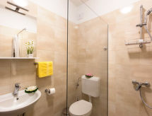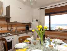Dvojna kuća "Luka". 500 m od centra mjesta Novi Vinodolski, 12 km od centra mjesta Crikvenica, 350 m od mora, 350 m od plaže. Za zajedničko korištenje: parcela 200 m2 (ograđena) - bilje. Terasa (80 m2), vrtna garnitura za sjedenje, roštilj. U kući: pristup internetu, perilica za rublje (za zajedničko korištenje, uz doplatu). Parking na parceli, javni parking na ulici. Trgovina 200 m, supermarket 1 km, restoran 1 km, šljunčana plaža 350 m. Dodatna informacija: zračna luka 29 km od kuće.Interior