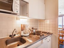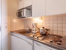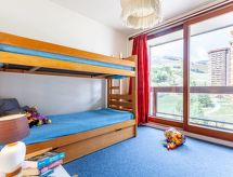 2 -sobni apartman 32 m2 na 14. katu, prema sjeveru. Jednostavno uređen: dnevni boravak/blagovaona s 1 krevetom (80 cm, dužina 190 cm), 1 ležajem (80 cm, dužina 190 cm), TV-om (plosnatim TV ekranom). Izlaz na balkon, prema sjeveru. 1 soba s 1 x 2 kreveta na kat (80 cm, dužina 190 cm), 1 ležajem (80 cm, dužina 190 cm). Izlaz na balkon, prema zapadu. Kuhinjska niša (4 ploče za kuhanje, pećnica, el. aparat za kavu). Kada, odv. WC. El. grijanje. Tapison. 2 balkona 4 m2, prema sjeveru i prema zapadu. Pogled na dolinu. Na raspolaganju: Internet (wireless LAN [WLAN], uz doplatu). Dodatna informacija: najviše 1 kućni ljubimac / pas dozvoljen. Protupožarni alarm.- postrojenja