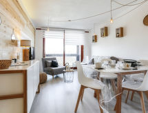 Kuća s više apartmana "Lunik Orion", na 19 kata. Ispod mjesta Corbier, 550 m od centra mjesta, 50 m od skijališta. Za zajedničko korištenje: bazen grijani (25 x 12 m, 90- 200 cm dubok, sezonska dostupnost: 16.Dec. - 16.Apr. i 01.Jul. - 31.Aug. bazen je otvoren u vremenu: 10:00-19:00). U kompleksu: dizalo, spremište za skije. Javni parking. Trgovina 550 m, trgovina živežnim namirnicama 50 m, restoran, bar 550 m, autobusna postaja 700 m, vanjski bazen 550 m. Skilift, sjedežnica, skijaške staze 50 m, škola skijanja 600 m, dječji vrtić na snijegu 250 m, staza za sanjkanje 600 m. Dodatna informacija: U slučaju povoljnih snježnih uvjeta pristup do kuće na skijama. Mogućnost rezerviranja dodatnih smještajnih jedinica. The swimming pool facilities are 400 m from the residence at the municipal pool. Entrance for under 3’s is not allowed. Children between 3 and 5 years old are allowed subject to weather conditions (in winter). Entrance tickets to the swimming pool are included in your rental price and will be given to you when you check in.Interior