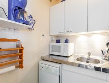 2 -sobni apartman 36 m2 na 13. katu, prema sjeveru. Jednostavno i svrsishodno uređen: dnevni boravak/blagovaona s 1 kaučem za 2 osobe (140 cm, dužina 190 cm), TV-om (plosnatim TV ekranom). Izlaz na balkon, prema sjeveru. 1 soba s 1 franc. krevetom (140 cm, dužina 200 cm), muzičkom linijom. Izlaz na balkon, prema sjeveru. Niša za spavanje s 1 x 2 kreveta na kat (80 cm, dužina 190 cm). Kuhinjska niša (2 ploče za kuhanje, mini pećnica, perilica za suđe, toster, kuhalo za vodu, mikrovalna pećnica, zamrzivač, el. aparat za kavu, raclette roštilj, set za fondue (sir)). Kada, odv. WC. El. grijanje. Tapison. Balkon 9 m2, prema sjeveru. Pogled na planine. Na raspolaganju: sušilo za kosu. Internet (wireless LAN [WLAN], uz doplatu). Dodatna informacija: apartman za nepušače. Protupožarni alarm. Ponuda od strane fizičke osobe u skladu s člankom 155, IV, CGI.- postrojenja