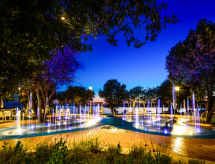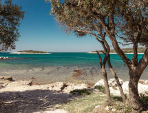 Turistički kompleks "Mon Perin", prikladan za djecu. 6 km od centra mjesta Bale, 17 km od centra mjesta Rovinj, mirno, sunčano mjesto, direktno na moru, direktno na plaži. Za zajedničko korištenje: parcela - drveće, bazen (400 m2, 45- 135 cm dubok, sezonska dostupnost: 30.May. - 03.Oct.). Bazen za djecu, tenis, košarka, boćalište, odbojka na pijesku, dječje igralište. Bazen održava vlasnik/vrtlar. Za samostalno korištenje: parcela 1'000 m2 - travnjak i drveće, bazen pravokutni, grijani (6 x 3 m, 135 cm dubok, sezonska dostupnost: 30.May. - 03.Oct.) s unutarnjim stepenicama. Terasa. Bazen održava vlasnik/vrtlar. U kompleksu: restoran, bar, pristup internetu, stolni nogomet, trgovina, praona rublja (za zajedničko korištenje, uz doplatu), najam bicikli. Parking uz kuću na parceli. Šljunčana plaža "Mon Perin", stjenovita plaža "Mon Perin". Jahanje konja 500 m, pješačke staze od kuće 100 m, biciklistička staza 150 m. Dodatna informacija: animacija. Kamp raspolaže sa 1 dodatim bazenom za djecu (90 m2, 60 cm dubok, otvoren u periodu 01.06.-03.10.).Interior