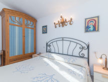 3 -sobna vila 70 m2. Svrsishodno i komforno uređena: veliki dnevni boravak/blagovaona s panoramskim prozorom s TV-om sa sat. prijemnikom (plosnatim TV ekranom), klima uređajem. 1 bračna soba. Izlaz u vrt. 1 soba s 1 x 2 kreveta na kat, tušem/bidetom/WC-om i klima uređajem. Izlaz na verandu. Mala kuhinja (4 ploče za kuhanje, pećnica, perilica za suđe, toster, mikrovalna pećnica, zamrzivač, el. aparat za kavu). Tuš/bidet/WC. Vrtna terasa. Garnitura za sjedenje, vrtni roštilj. Vrlo lijep pogled na more. Na raspolaganju: perilica za rublje. IUN:Q8405- postrojenja