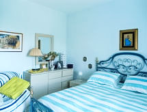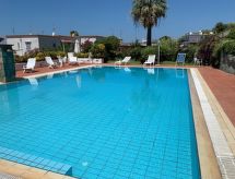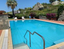 "Maestrale", 3 -sobni apartman 90 m2 na 1. katu. Svijetlo, komforno i lijepo uređen: dnevni boravak/blagovaona s panoramskim prozorom s stolom za blagovanje i TV-om (plosnatim TV ekranom), DVD-om. Izlaz na mjesto za sjedenje u vrtu. 1 bračna soba. Izlaz na terasu. 1 soba s 3 kreveta. Izlaz na balkon. Mala kuhinja (4 ploče za kuhanje, mikrovalna pećnica). 2 x tuš/bidet/WC. Bez grijanja. 2 terase. Garnitura za sjedenje. Lijep pogled na more, krajolik i mjesto. Na raspolaganju: perilica za rublje. Internet (wireless LAN [WLAN], besplatan). Prikladno za obitelji.- postrojenja