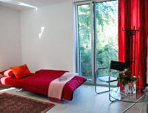Brissago 10 km od mjesta Ascona: Velika, luksuzna vila "Maganou", zasebna, okružena drvećem i livadama. Izolirano, mirno, sunčano mjesto u četvrti s vilama, 500 m od jezera, u slijepoj ulici, u zelenom, prema jugoistoku. Za samostalno korištenje: veliki, lijepi, njegovani vrt bilje i drveće, travnjak za sunčanje. Stolni tenis, mjesto za sjedenje, pergola, terasa, vrtna garnitura za sjedenje. U kući: centralno grijanje. Prilaz autom do parceli. Put sa stepenicama (45 stepenica) do kuće. Parking uz kuću na parceli. Trgovina živežnim namirnicama, restoran, cafe 500 m, pješice 15 minuta do centra, autobusna postaja "Linie 8" 500 m, željeznička postaja "Locarno SBB- CFF" 12 km, vanjski bazen 800 m. Golf teren (18 rupa) 11 km, minigolf 10 km, pješačke staze od kuće 50 m. U blizini: Ascona - Locarno, Dannemann Centro, Brissago, Mercato Cannobio, Luino, Ponte Tresa IT, Outlet Foxtown, Mendrisio, Falconeria, Locarno, Swissminiatur, Melide. Poznata skijališta u blizini: Cardada, Bosco Gurin, Nara, Campra, Campo Blenio, Cari, Airolo, Andermatt. Poznata jezera u blizini: Lago Maggiore, Lago di Lugano, Lago di Como. Pješačke staze: Cardada, Monte Bré, Monte Tamaro-, Monte Lema, Centovalli, Valle Verzasca, Valle Maggia, Valle Onsernone. Dodatna informacija: oprema za bebe na upit (uz doplatu), Nije prikladno za malu djecu. Nije prikladno za djecu mlađu od 8 godina. Objekt ref.br. CH6614.70.1 je smješten na istoj parceli.Interior