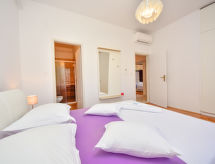 4 -sobna kuća 130 m2, prema jugozapadu. Dnevni boravak/blagovaona 22 m2 s TV-om sa sat. prijemnikom (plosnatim TV ekranom), klima uređajem. Izlaz na terasu. 2 sobe, svaka soba s 1 franc. krevetom (160 cm, dužina 200 cm), klima uređajem. Izlaz na terasu. 1 soba s 2 kreveta (90 cm, dužina 200 cm), tušem/WC-om i klima uređajem. Izlaz na terasu. Otvorena kuhinja (pećnica, perilica za suđe, 4 staklokeramičke ploče za kuhanje, mikrovalna pećnica, zamrzivač). Tuš/WC. Terasa 40 m2. Garnitura za sjedenje, ležaljke. Pogled na bazen. Na raspolaganju: Internet (wireless LAN [WLAN], besplatan).- postrojenja