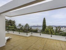 "Les Hespérides", 4 -sobna kuća 110 m2 na 2 etaže. Svijetlo, antikno uređena: dnevni boravak/blagovaona s TV-om (plosnatim TV ekranom), DVD-om. Izlaz na terasu. 1 soba s 2 kreveta (90 cm, dužina 190 cm), klima uređajem. Kuhinja (pećnica, perilica za suđe, 4 plamena za kuhanje, toster, kuhalo za vodu, mikrovalna pećnica, zamrzivač, el. aparat za kavu). Kada, odv. WC. Grijanje na naftu. Gornji kat: 1 soba s 1 franc. krevetom (140 cm, dužina 190 cm) (dužina 190 cm), klima uređajem. Izlaz na terasu. 1 soba s 2 kreveta (90 cm, dužina 190 cm), el. grijanjem i klima uređajem. Izlaz na terasu. Kada, odv. WC. Terasa 50 m2, prema jugu i prema zapadu. Garnitura za sjedenje, električni roštilj, ležaljke (6). Pogled na more i luku. Na raspolaganju: perilica za rublje, glačalo, sušilo za kosu. Internet (wireless LAN [WLAN], besplatan). Parking (2 automobila). Dodatna informacija: prikladno za obitelji. Kuća za nepušače. Najviše 1 kućni ljubimac / pas dozvoljen. Protupožarni alarm. 8307000140521- postrojenja