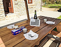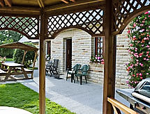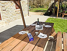 3 -sobna kuća u nizu 50 m2. Dnevni boravak/blagovaona s digitalnim TV, radiom i električnim roletnama. Izlaz u vrt, na terasu. 1 soba s 1 bračnim krevetom (2 x 70 cm, dužina 190 cm), električnim roletnama. 1 soba s 2 kreveta (90 cm, dužina 190 cm), električnim roletnama. Otvorena kuhinja (4 ploče za kuhanje, pećnica, perilica za suđe, mikrovalna pećnica, zamrzivač, gril) s barom. Tuš, odv. WC. Podno grijanje. Terasa. Garnitura za sjedenje, vrtni roštilj. Na raspolaganju: perilica za rublje, glačalo, sušilo za kosu. Internet (wireless LAN [WLAN], besplatan). Dodatna informacija: kuća za nepušače. Najviše 1 kućni ljubimac / pas dozvoljen. Protupožarni alarm.- postrojenja