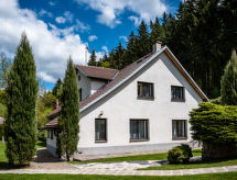 "Malovidy", 8 -sobna kuća 280 m2 na 2 etaže. Komforno i moderno uređena: dnevni boravak s švedskom peći i TV-om sa sat. prijemnikom (plosnatim TV ekranom), videom, radiom i DVD-om. Izlaz na terasu, na bazen. 2 sobe, svaka soba s 1 bračnim krevetom. Kuhinja (pećnica, perilica za suđe, 4 staklokeramičke ploče za kuhanje, mikrovalna pećnica, zamrzivač, gril) s stolom za blagovanje i kutom za blagovanje. 2 x kada/WC, Sauna. Gornji kat: 4 sobe, svaka soba s 1 bračnim krevetom i TV-om sa sat. prijemnikom (plosnatim TV ekranom). Soba za igru. 2 x kada/WC. El. grijanje, grijanje na drva. Terasa 40 m2. Garnitura za sjedenje. Lijep pogled na dolinu i krajolik. Na raspolaganju: Internet (wireless LAN [WLAN], besplatan). Dodatna informacija: prikladno za obitelji. Kuća za nepušače. Protupožarni alarm.- postrojenja