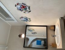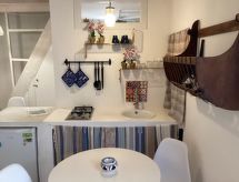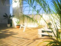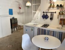 1 -sobni studio 42 m2 na 2 etaže na 1. katu. Svijetlo, djelomično spušten strop, svrsishodno i komforno uređen: dnevni boravak/blagovaona s 1 kaučem za 1 osobu, stolom za blagovanje, kuhinjskim blokom i TV-om (plosnatim TV ekranom). Izlaz na mjesto za sjedenje u vrtu. Otvorena galerija, visina stropa 190 - 150 cm, bez ormara s 1 bračnim krevetom. Kuhinjska niša (2 ploče za kuhanje, mini pećnica, pećnica, kuhalo za vodu). Tuš/bidet/WC. Klima uređaj, grijanje toplim zrakom. Terasa 30 m2. Garnitura za sjedenje, ležaljke. Pogled na na grad. Na raspolaganju: sušilo za kosu. Dodatna informacija: hladnjak bez zamrzivača apartman za nepušače. 1 kućni ljubimac / pas dozvoljen. Posteljina, ručnici, završno čišćenje i troškovi energije su uključeni u cijenu. LE07504291000020255- postrojenja