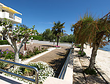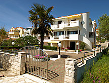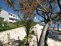 4 -sobni apartman 100 m2 na 2. katu, prema jugozapadu. Dnevni boravak/blagovaona s TV-om sa sat. prijemnikom (plosnatim TV ekranom), klima uređajem. Izlaz na terasu. 2 sobe, svaka soba s 1 franc. krevetom (180 cm, dužina 200 cm), tušem/WC-om. Izlaz na balkon. 1 soba s 1 franc. krevetom (180 cm, dužina 200 cm), tušem/WC-om. Blagovaona s kuhinjskim blokom i TV-om sa sat. prijemnikom. Izlaz na balkon. Otvorena kuhinja (4 ploče za kuhanje, pećnica, perilica za suđe, zamrzivač). Balkon, terasa 18 m2 (djelomično natkrita). Garnitura za sjedenje. Pogled na more. Na raspolaganju: Internet (wireless LAN [WLAN], besplatan). Parking (ograđen).- postrojenja