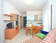 Stambeni objekt "Residence Marco Polo", na 8 kata. U četvrti Sabbiadoro 200 m od centra mjesta Lignano-Sabbiadoro, 13 km od centra mjesta Bibione, 95 km od centra mjesta Trieste, 50 m od mora, prijeći cestu. Za zajedničko korištenje: parcela (ograđena), njegovani vrt - travnjak i drveće, bazen (240 m2, sezonska dostupnost: 01.Jun. - 15.Sep.). Bazen za djecu, terasa. U kući: dizalo, najam bicikli. Parking uz kuću na parceli, zajednička garaža uz kuću. Dimenzija: visina 205 cm. Trgovina, restoran 200 m, željeznička postaja "Latisana (Milano-Venezia-Triest)" 20 km, pješčana plaža 50 m. Golf teren (18 rupa) 7.2 km.Interior