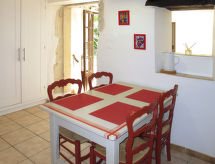 "Marguerie (LBM110)", 2 -sobna kuća 50 m2. Renovirana godine 2011, rustikalno i ukusno uređena: dnevni boravak s TV-om, radiom i CD-om. Izlaz na terasu. 1 soba s 1 franc. krevetom. Kuhinja (pećnica, perilica za suđe, 4 plamena za kuhanje, toster, kuhalo za vodu, mikrovalna pećnica, zamrzivač, el. aparat za kavu) s stolom za blagovanje. Tuš/WC. Grijanje na naftu. Terasa (djelomično natkrita), vrt 150 m2. Garnitura za sjedenje, električni roštilj (prijenosni), ležaljke (2). Na raspolaganju: perilica za rublje, glačalo, visoka dječja stolica, dječji krevetić. Internet (wireless LAN [WLAN], besplatan). Parking (1 automobil). Dodatna informacija: najviše 1 kućni ljubimac / pas dozvoljen. Protupožarni alarm, vatrogasni aparat.- postrojenja